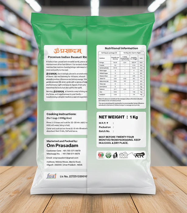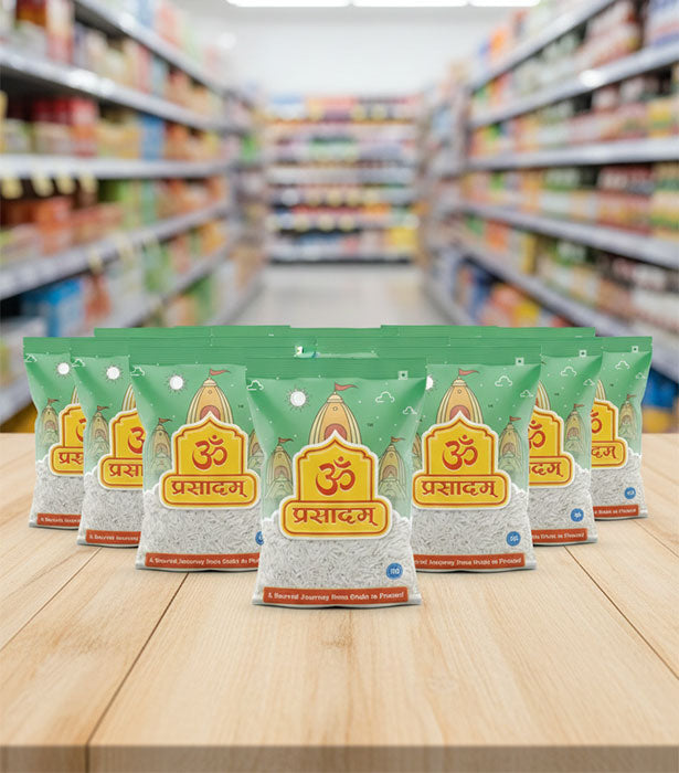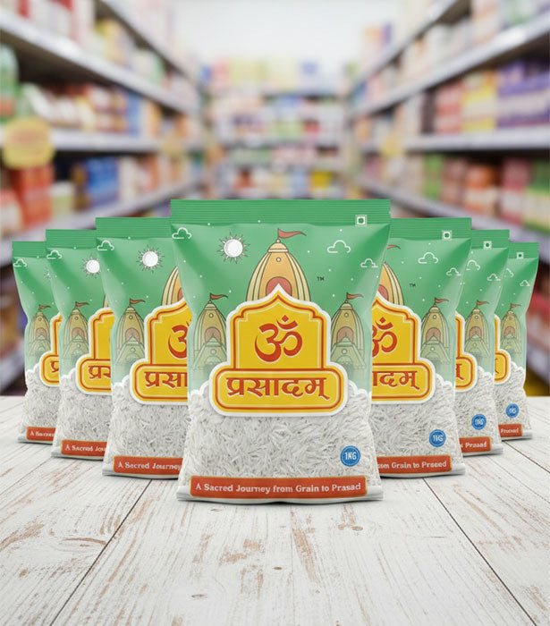 Om Prasadam ek bhakti se abhimantrit premium basmati chawal hai, jo 48 ghante tak Naam-Jap aur Satsang ke pavitra mahaul mein rakha jaata hai. Har daana divya urja se bhara hua hota hai – Har Daana Aashirvaad.